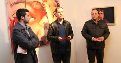 Cervo, 26 de xaneiro de 2013-A primeira exposición individual do artista burelés Óscar Villarquide xa se pode visitar no Centro Cultural e de Servizos á Cidadanía de Cervo. Esta tarde o edil cervense Luis Guillén así como representantes da asociación organizadora, A Sombriza, e o propio autor participaron na inauguración desta mostra inédita xa que ata o de agora non se exhibira nunha sala de exposicións.
