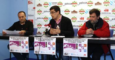Lugo, 21 de marzo de 2013. O delegado da Área de Cultura e Turismo, o nacionalista Mario Outeiro, xunto ao presidente da Federación Galega de Tríatlon e Péntatlon Moderno, Paco Villanueva, e o representante da delegación en Lugo de Deportes da Xunta de Galiza, Manolo “Cadramón”, (o concelleiro de Deportes de Lugo, Xosé Manuel Grandío non puido acudir malia que a institución que representa tamén colabora coa celebración desta proba na que o principal patrocinador é a Área de Deportes da Deputación) presentaron esta mañá a 2ª proba do Campionato de España por Autonomías de categorías inferiores de Péntatlon Moderno -1º premio Deputación de Lugo-, que se disputará este sábado 23 de marzo en Lugo. Esta é a segunda proba, dun total de tres clasificatorias para as finais do Campionato de España, xa que a anterior disputouse en Sant Boi o pasado 3 de marzo, onde a selección galega acadou uns notables éxitos.