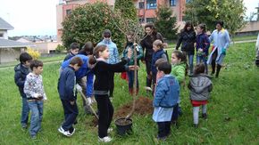 Os nenos e nenas do CEIP de San Cosme celebraron hoxe o día forestal mundial plantando varias árbores. Unha pereira, un maceira e un bidueiro foron as especies elixidas para celebrar esta xornada. Os rapaces estiveron acompañados dos seus profesores e dos concelleiros de Medio Ambiente e Obras, José Manuel Gómez e Lorenzo Penabad, respectivamente.