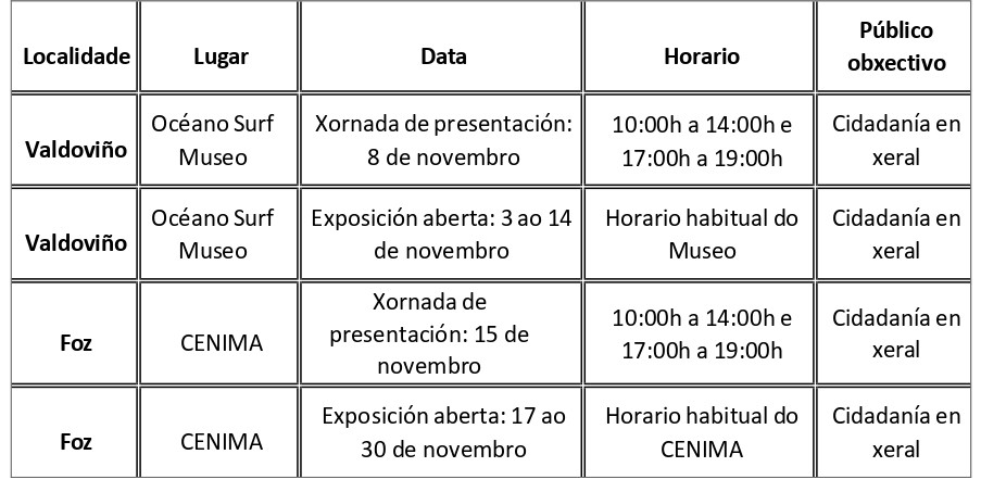 Valdoviño (8 de novembro) e Foz (15 de novembro). A inscripción para a experiencia de lentes 360º realizarase in situ o mesmo día das xornadas e atenderase según orden de chegada.